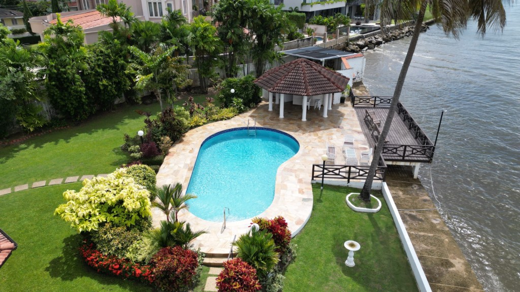 Seafront, secluded compound with a pool and spacious entertaining area.